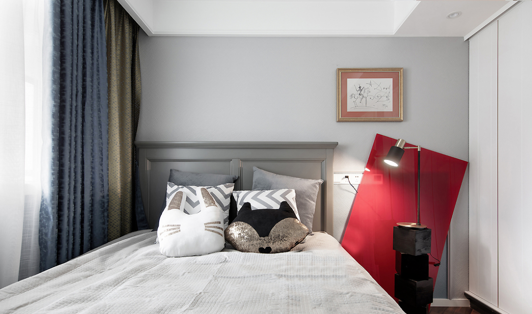 ▲ 次臥延續(xù)灰白調(diào)搭配的風(fēng)格,柔和的色調(diào)有一種寧靜安適的氛圍。