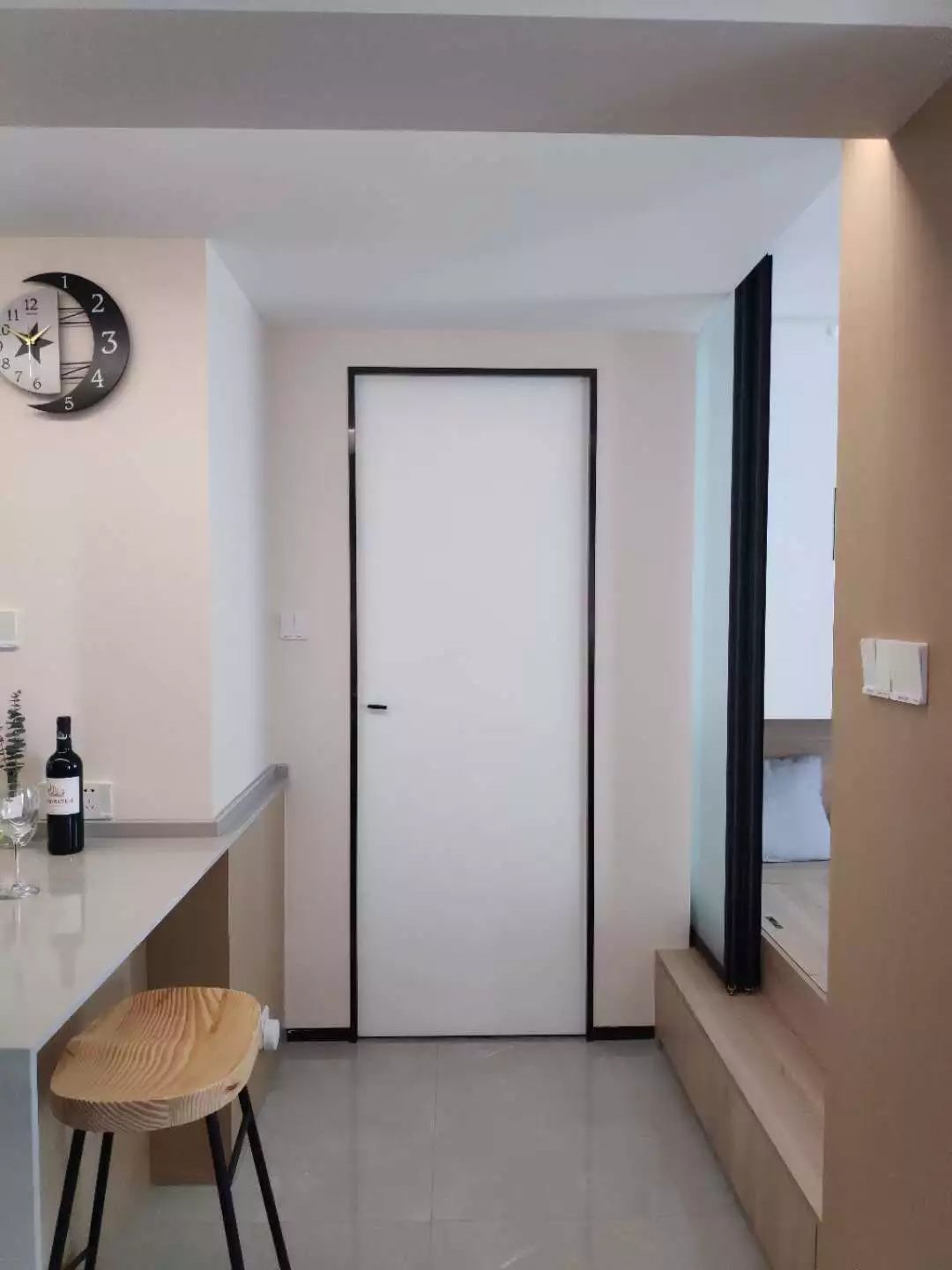 在入戶門的另一側(cè)做了一個(gè)小吧臺(tái),廚房門外的小吧臺(tái)能夠增添一些情調(diào)感,整體開(kāi)放式的布局也讓人感覺(jué)非常的寬敞和明亮。