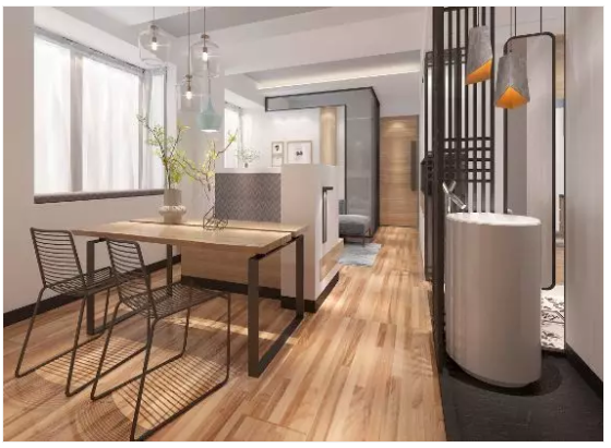小戶型空間本就不多,再?gòu)?qiáng)調(diào)區(qū)域的劃分會(huì)顯得空間內(nèi)各個(gè)區(qū)域更狹窄。很多人為了突出區(qū)域感,會(huì)用不同的材質(zhì)與高度來(lái)加以劃分區(qū)域,于是在小戶型中造成了“回廊”現(xiàn)象,阻礙視線又浪費(fèi)空間。
