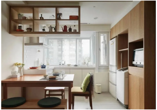 當(dāng)然,對(duì)于那些想在廚房里放洗衣機(jī)的家庭,把洗衣機(jī)擺放在這里同樣是一個(gè)不錯(cuò)的解決辦法。